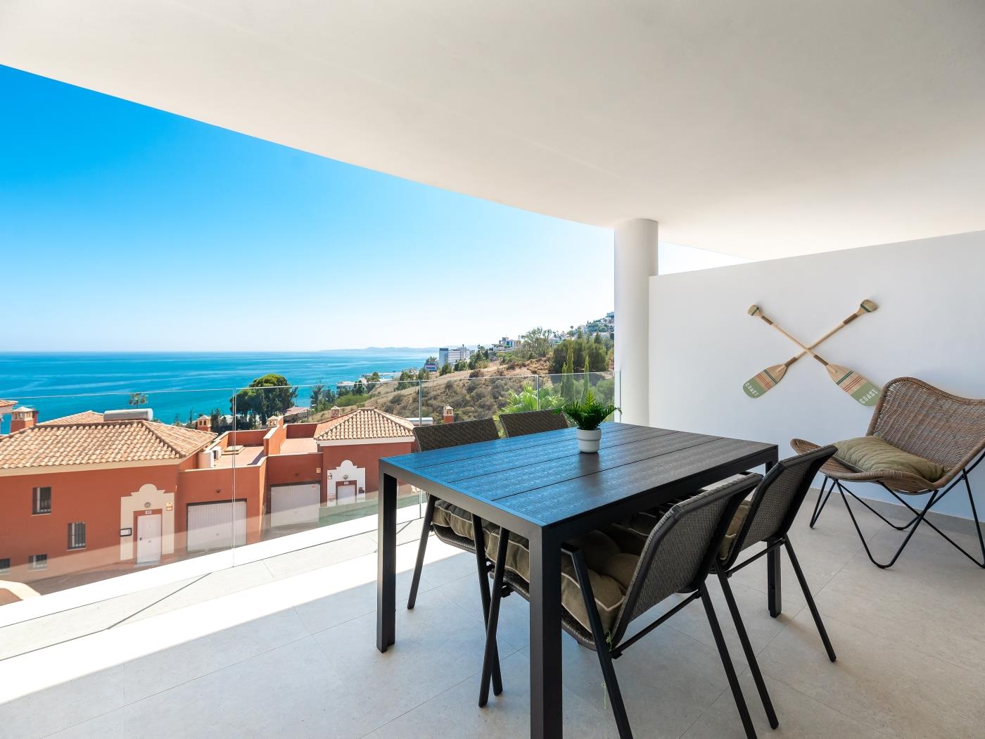 Le encantará las comodidades que ofrecemos en nuestra vivienda. Desde un café al despertar con unas vistas espectaculares al Mar Mediterráneo en nuestra magnífica terraza, atardeceres de en sueño con una visión panorámica de mar y tierra de más de 270º, hasta noches de Netflix disfrutando con la familia de su gran variedad cinematográfica.