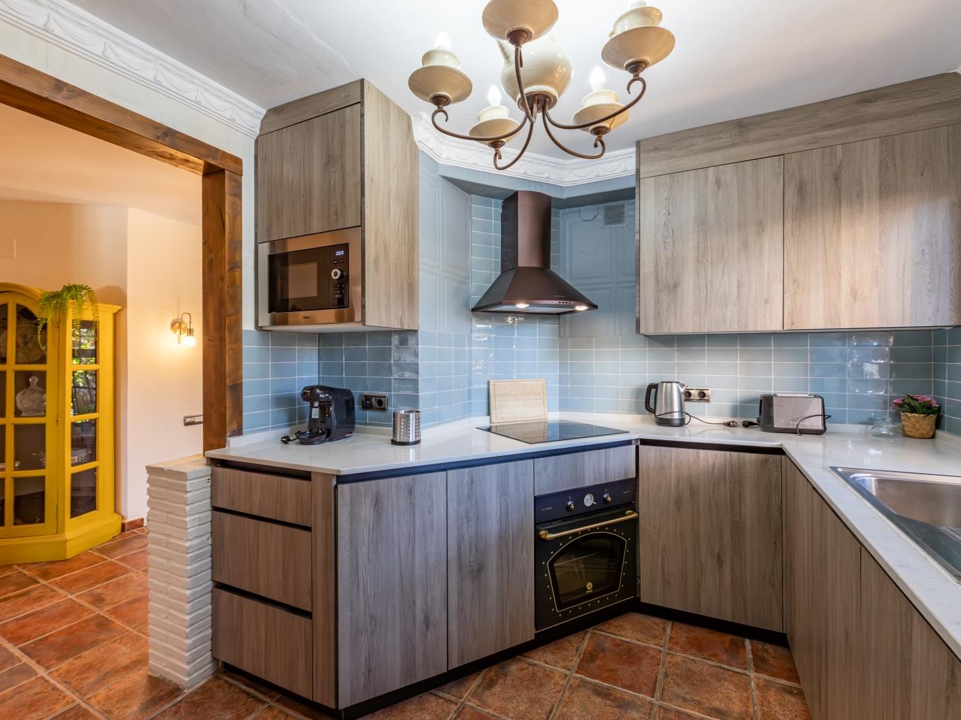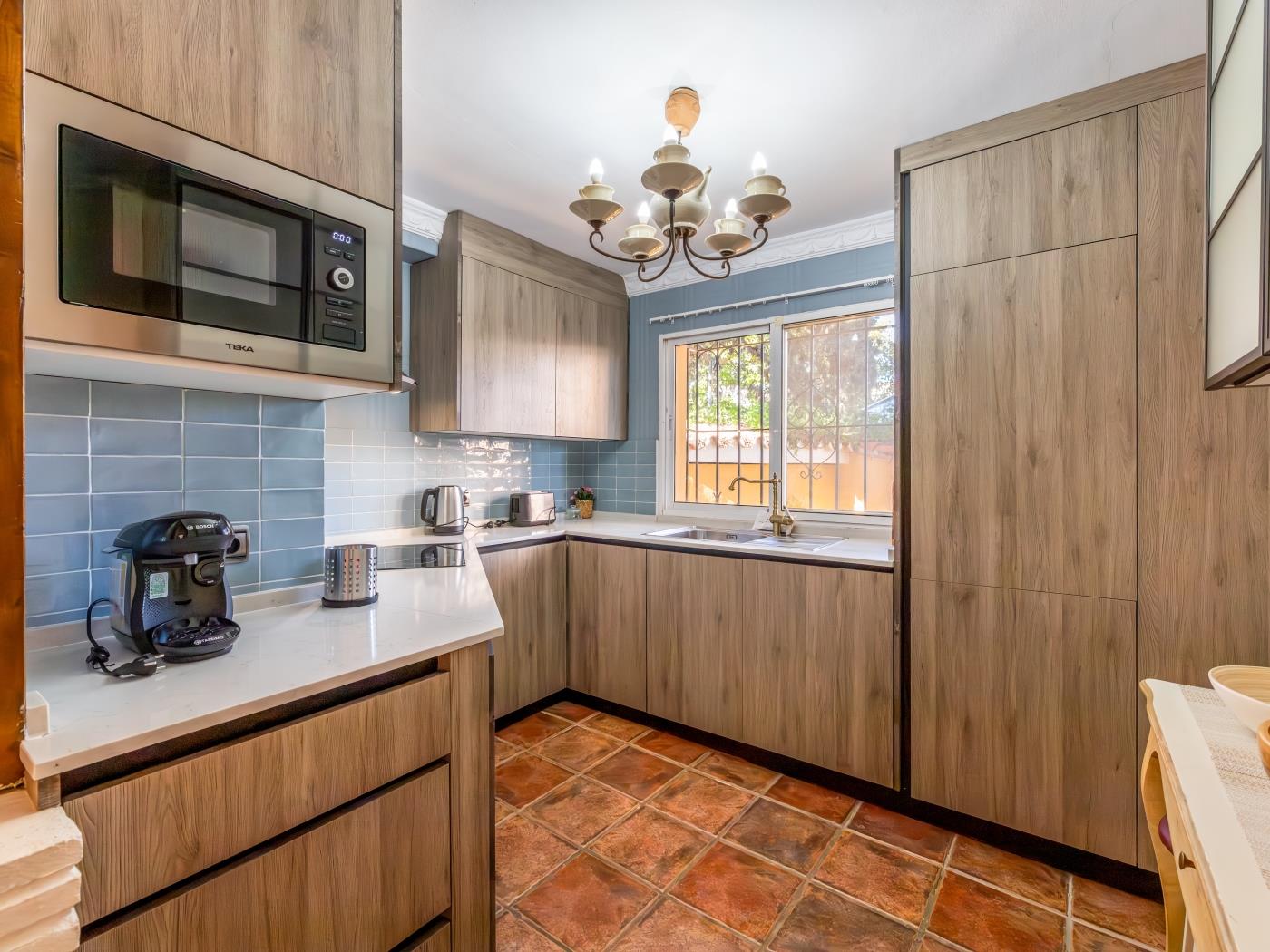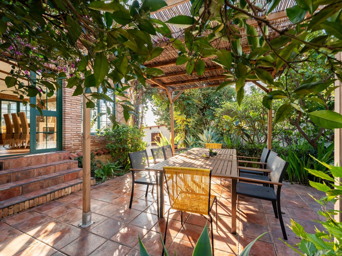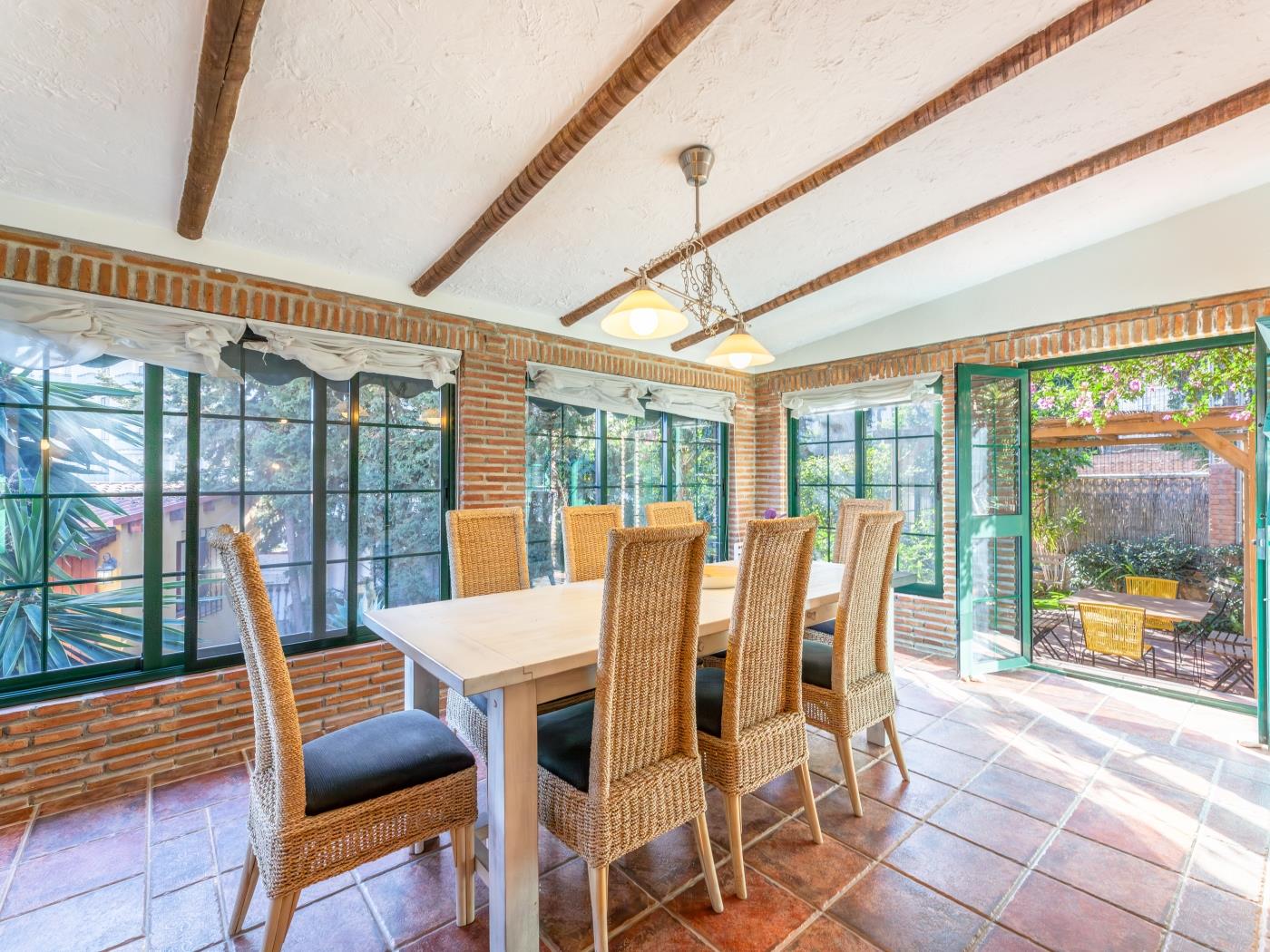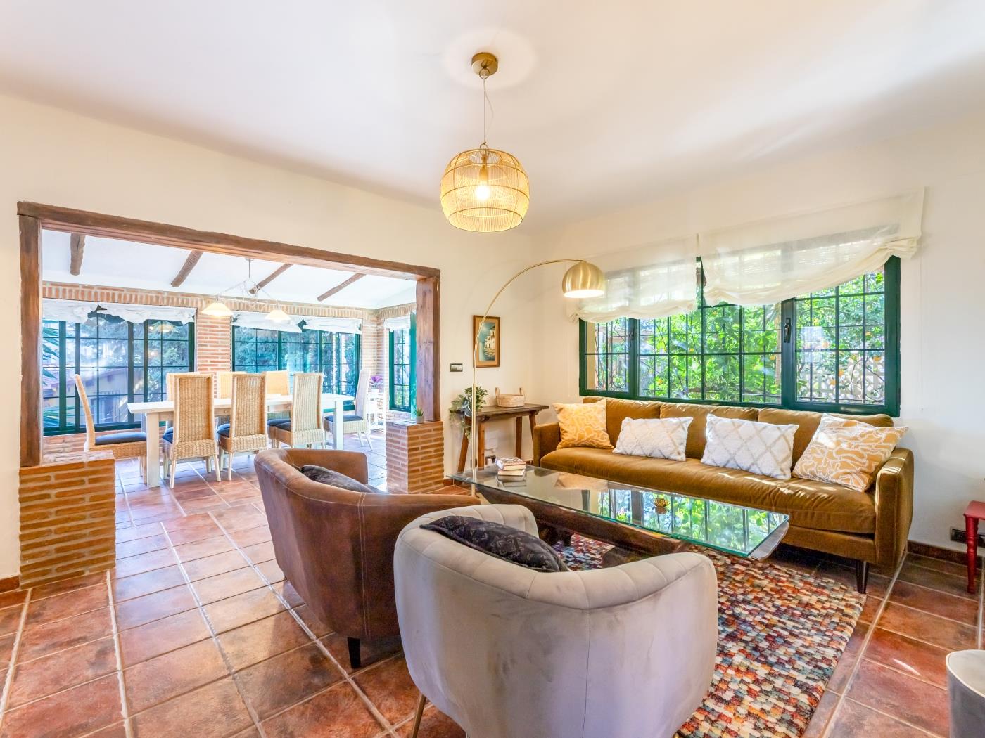 The villa is divided into 2 floors. The main entrance leads to a spacious living room that connects to the kitchen and dining area, with direct access to a beautiful Andalusian patio. From here, a few steps lead down to the pool and green areas. Enjoy large gatherings in the magnificent garden with barbecue and pool, or cozy Netflix nights with your family 🎬✨.