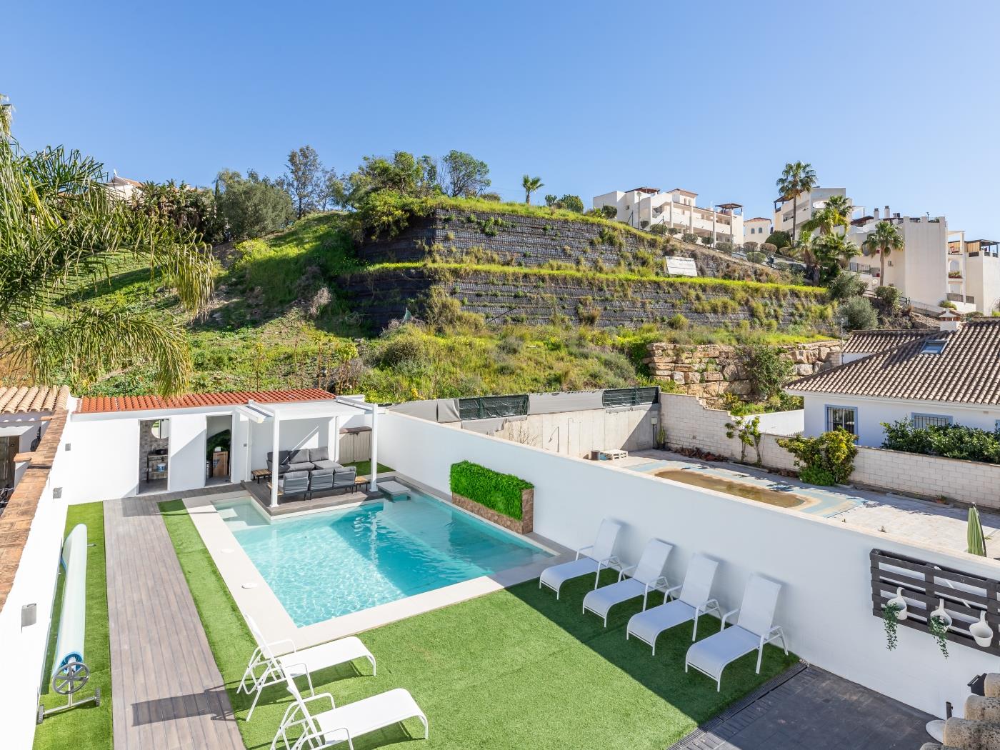 The villa is full of natural light. Blessed with a prime location, you can walk to the beach and other places with public transport to enjoy Benalmádena and surroundings (Málaga, Torremolinos, Fuengirola) 🚆.