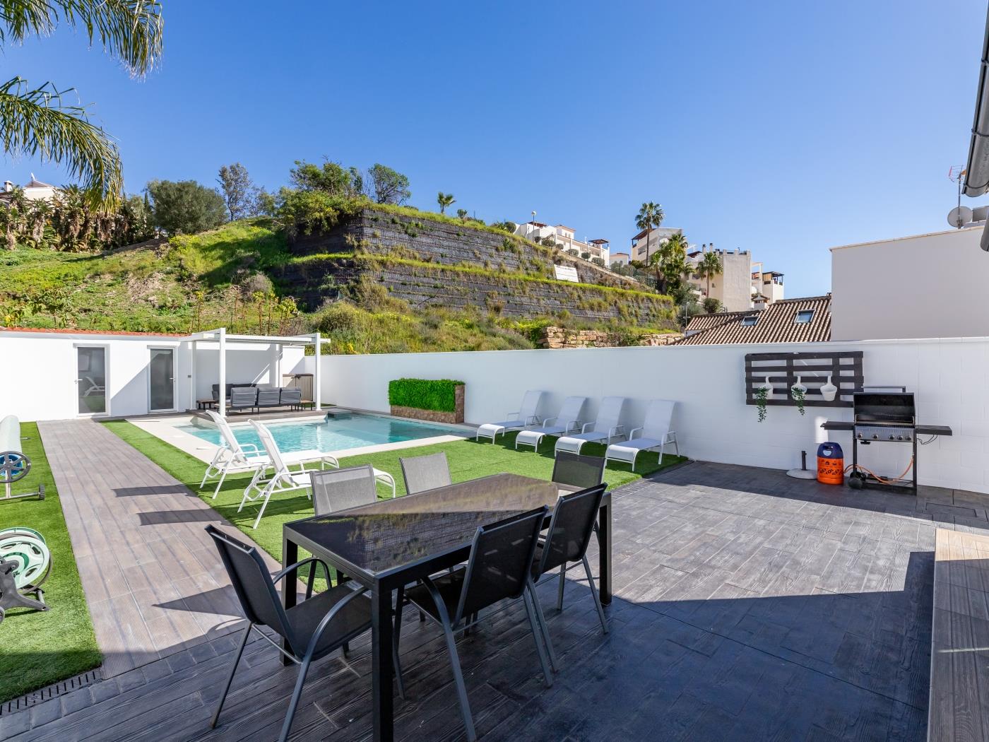 Enjoy our wonderful villa with enviable space and amenities. Exploring Benalmádena will be completely special from this location. Don’t miss the chance to book this property, which will make your holiday unforgettable for you and your family 🏡.