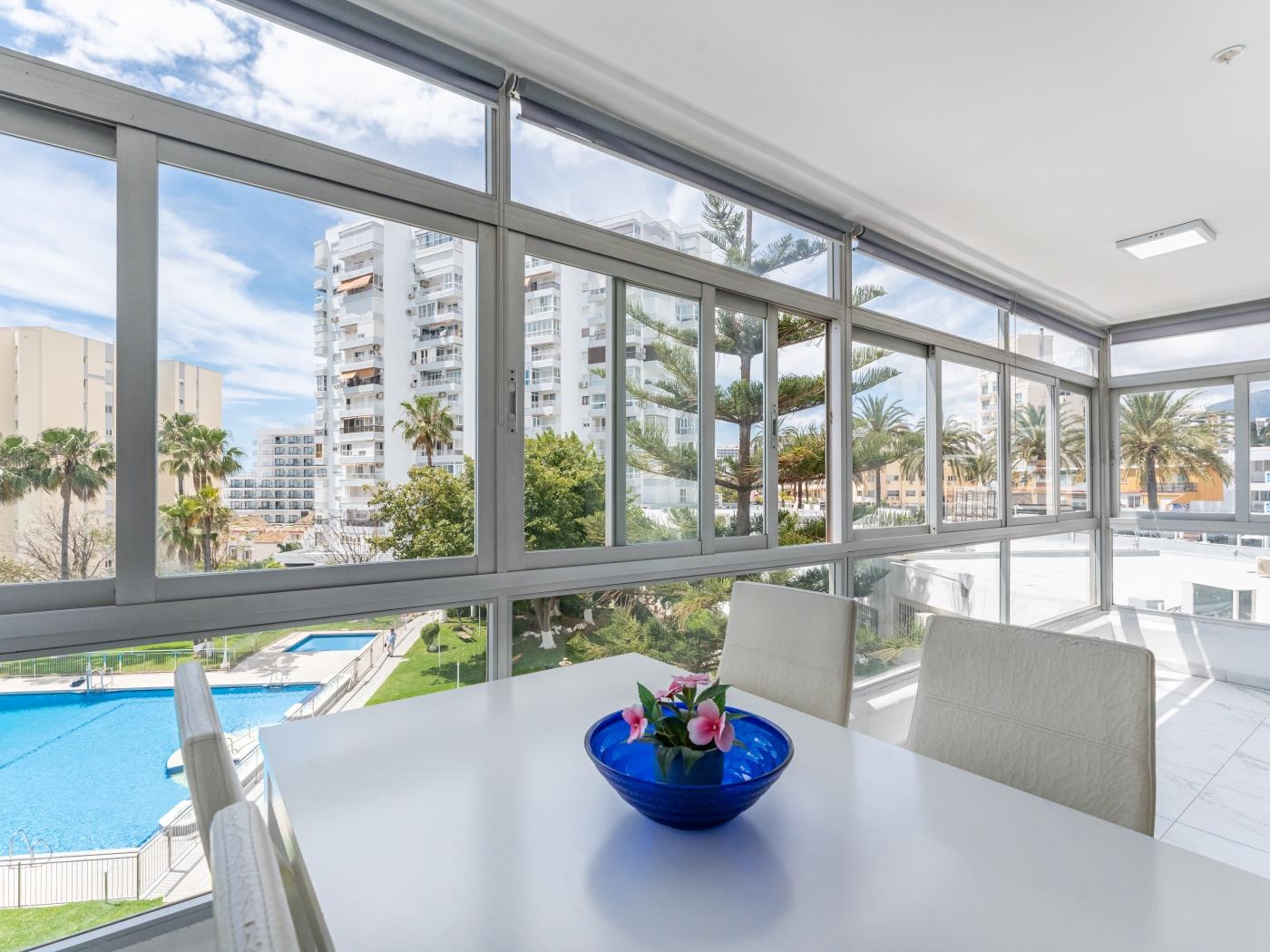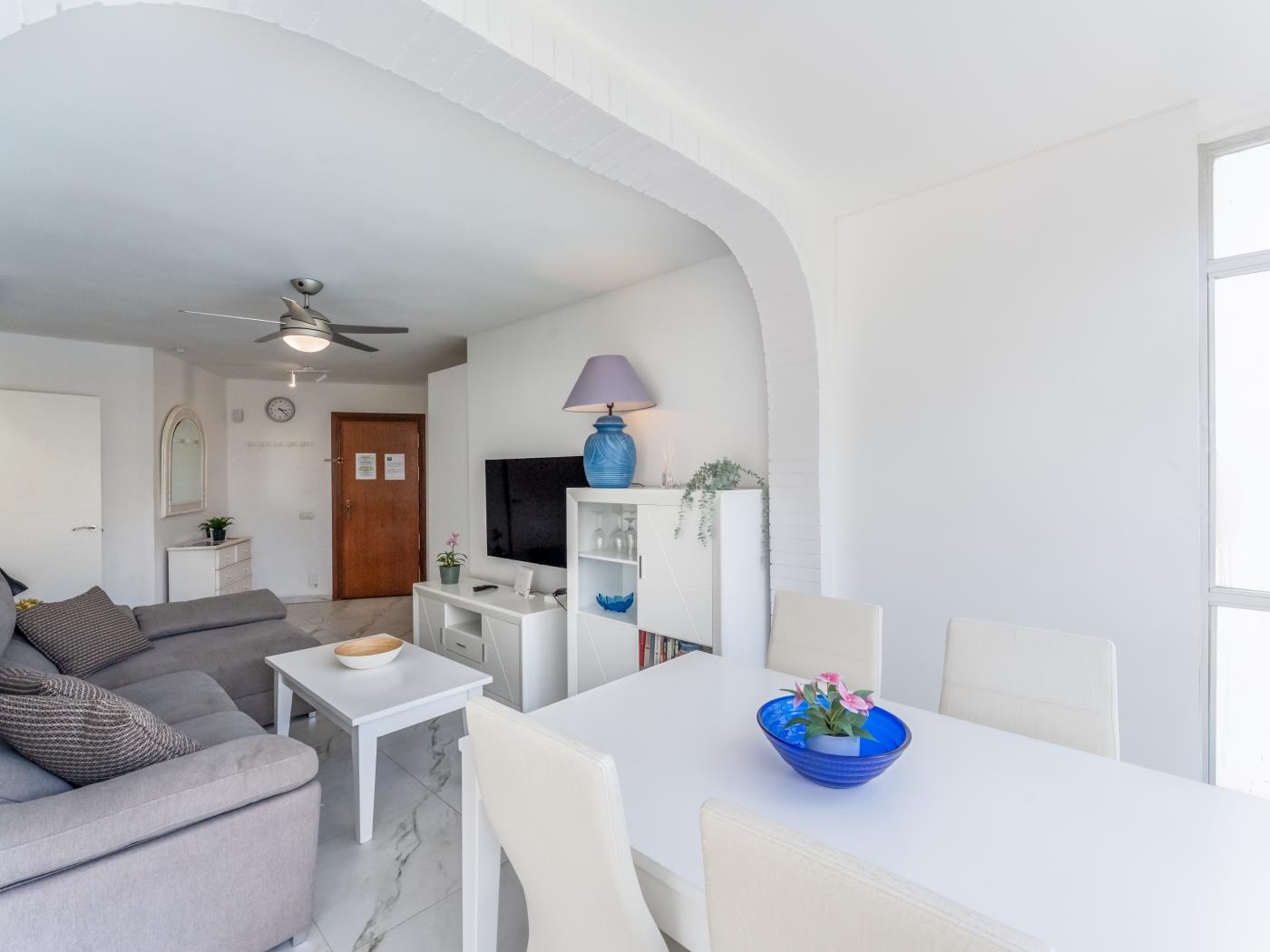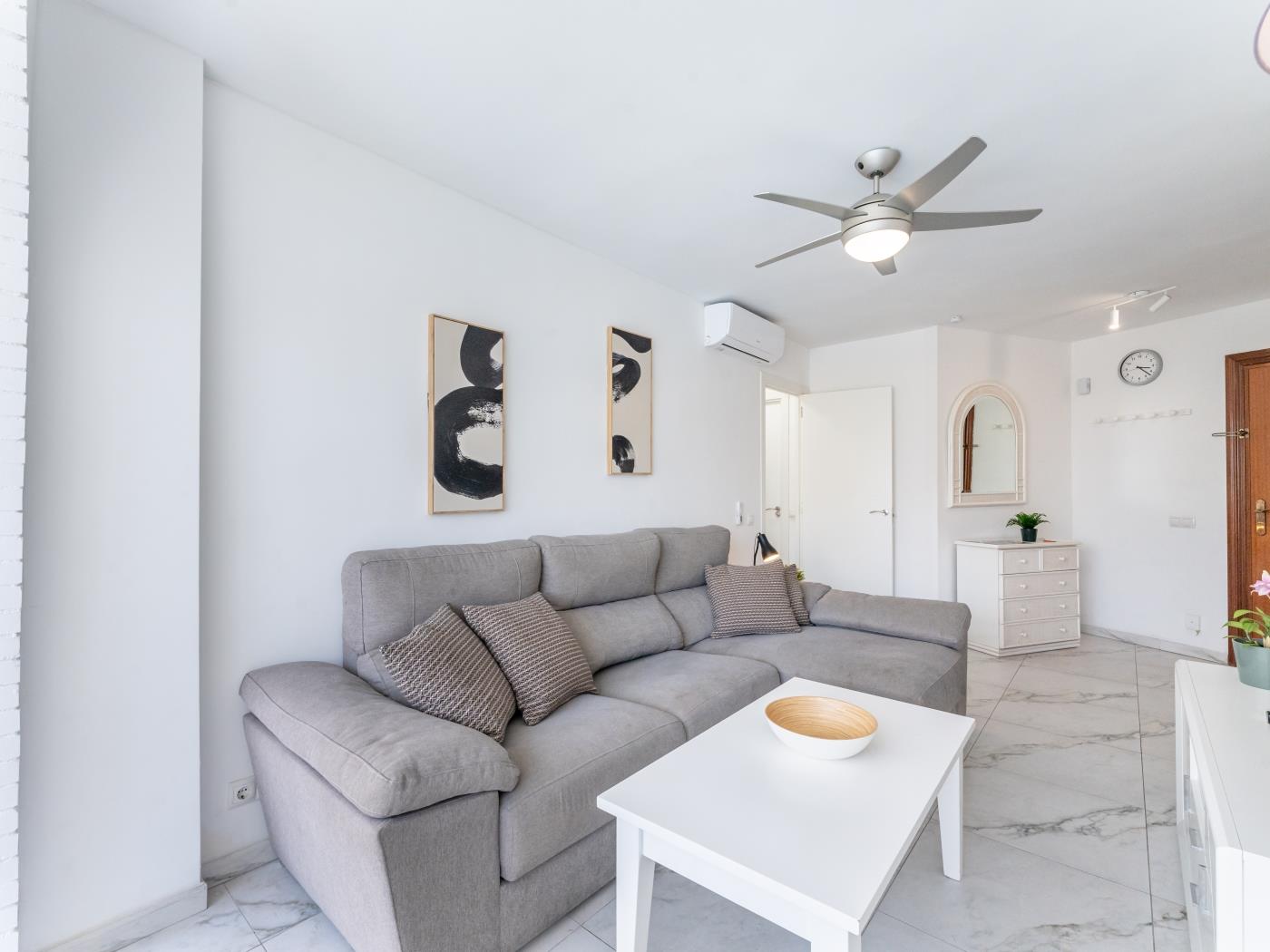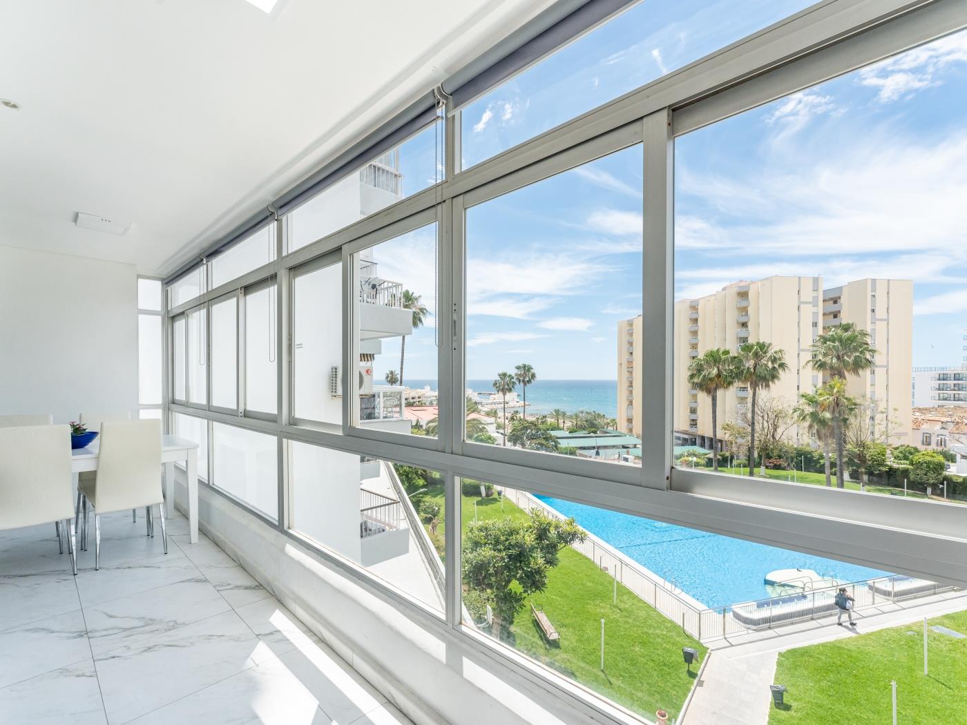 The apartment offers natural light, a terrace overlooking the sea and marina, and everything needed for your stay on the Costa del Sol.