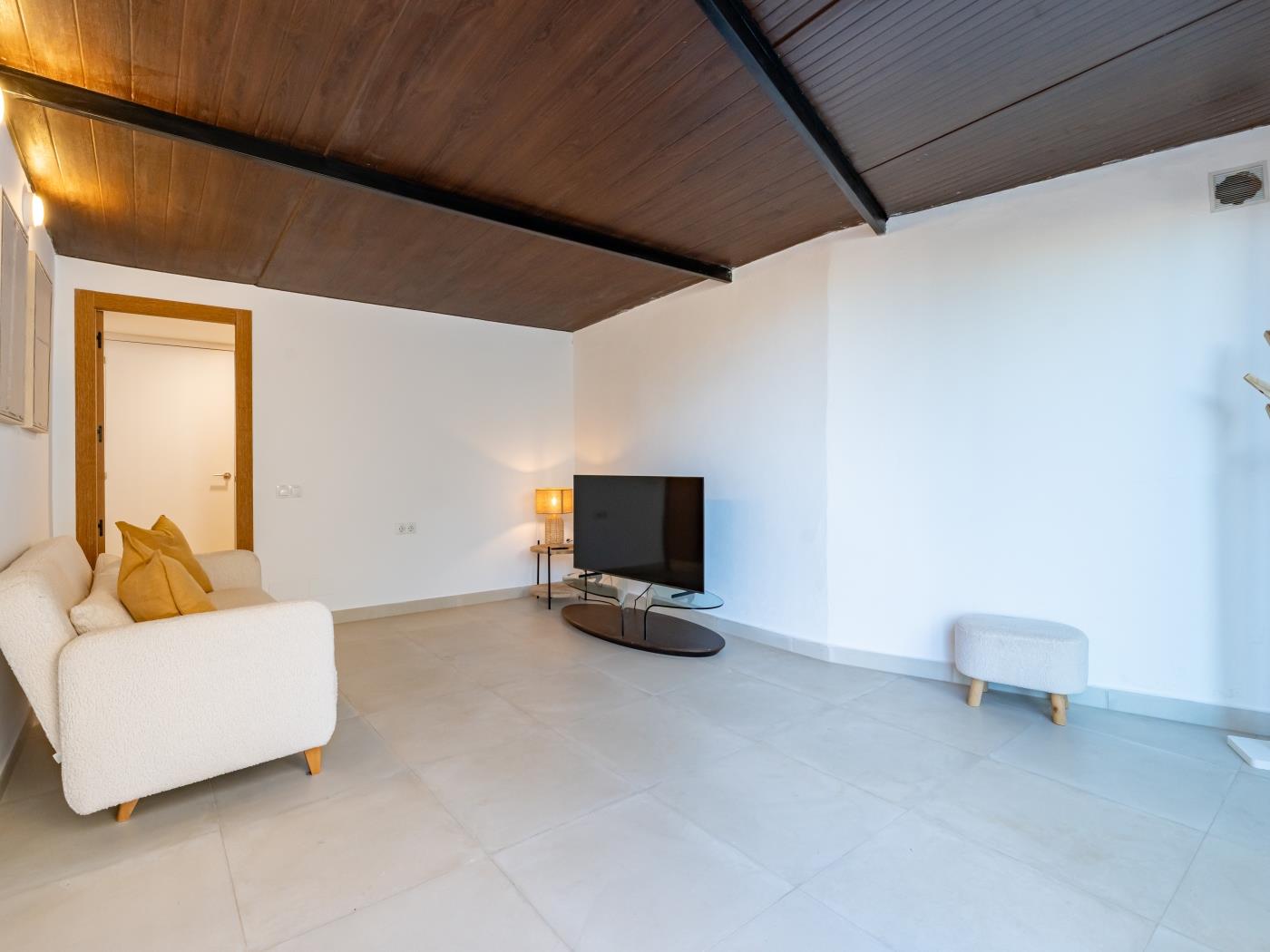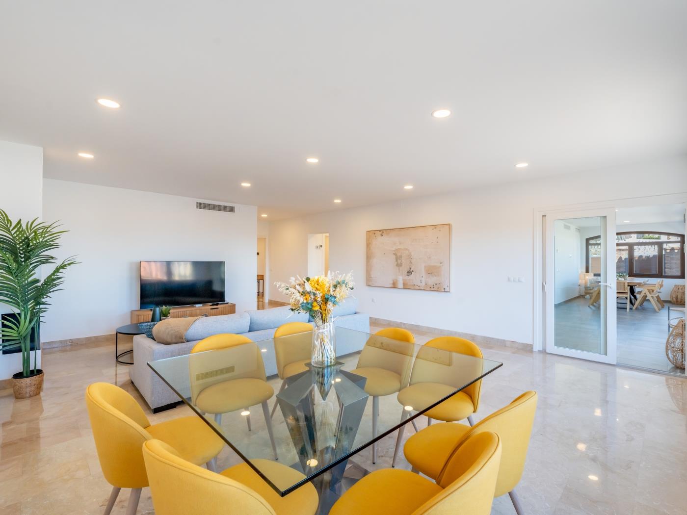 You will love the comforts we offer. The villa is divided into two areas: a main villa with 3 bedrooms and 2 bathrooms on one single level, offering generous space, and an annex apartment with a living area and private bathroom. The main entrance leads to a large living room connecting the kitchen and dining area, as well as a total of 4 bedrooms and 3 full bathrooms. You can host memorable events in our magnificent garden with barbecue and pool, or enjoy cozy Netflix nights with the family 🎬.