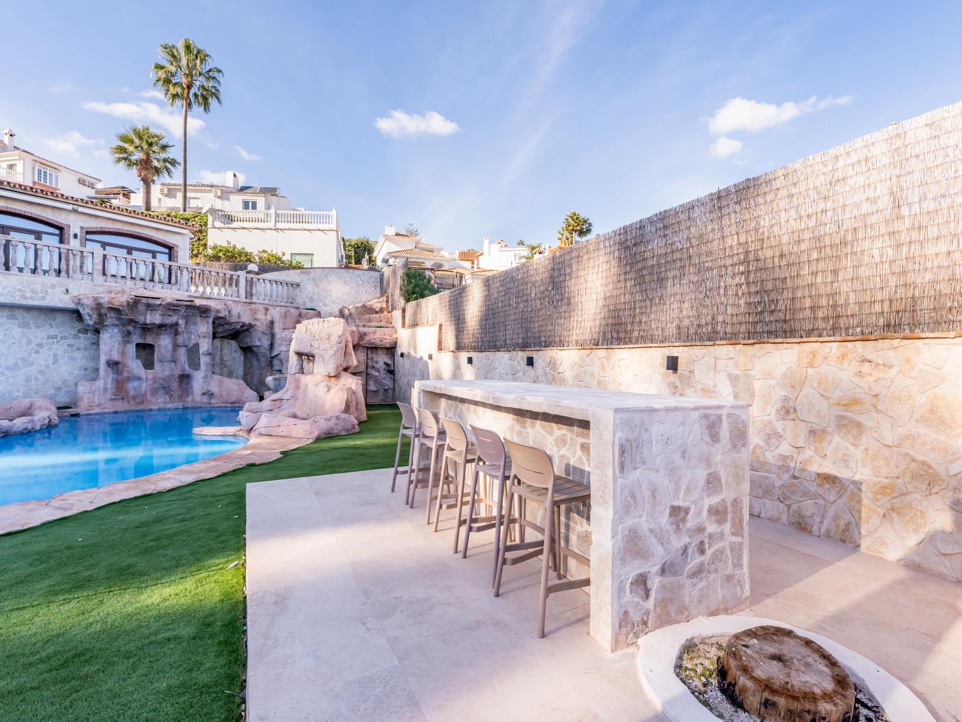 We strive to help our guests explore Benalmádena in the best possible way, offering personalized advice on the best activities, restaurants, and leisure areas 🧭 around the villa. You and your family will enjoy a beautiful villa filled with charming details, including outdoor areas with sun loungers, barbecue facilities, and a swimming pool available all year round at an enviable temperature 🏊♂️🌴.